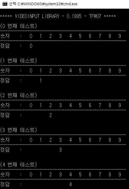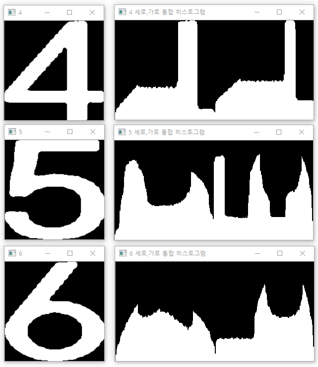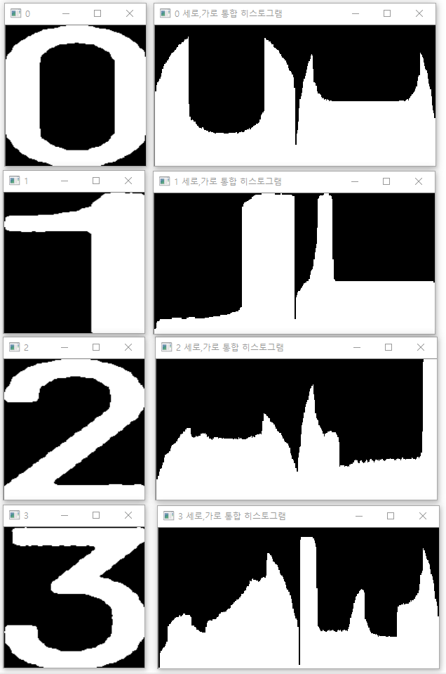 추가적으로 테스트를 진행해보면 위 방식의 히스토그램의 비교를 통한 숫자 인식은