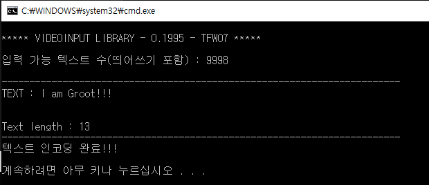 그리고 다시 cmd창에서 Image Decording.exe을 실행하면 같은 폴더에 있는 Encording_image.bmp를 입력받아