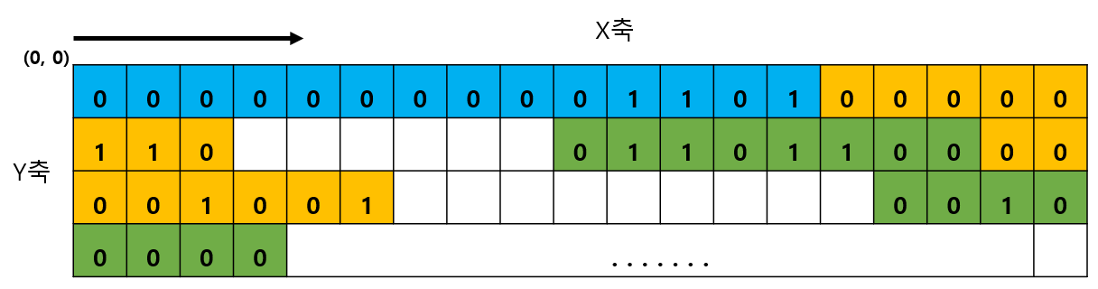 // 데이터 정보 입력 // (y,8+위치정보)를 기준으로 8픽셀 맨 하위 비트에 입력